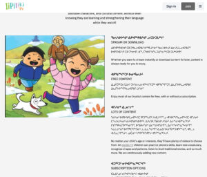 Iipitiki.TV is a Nunavut educational streaming service that provides evidence-based, educational content supporting early childhood education. The channel features free, educational videos that support Inuktut language development for young children.